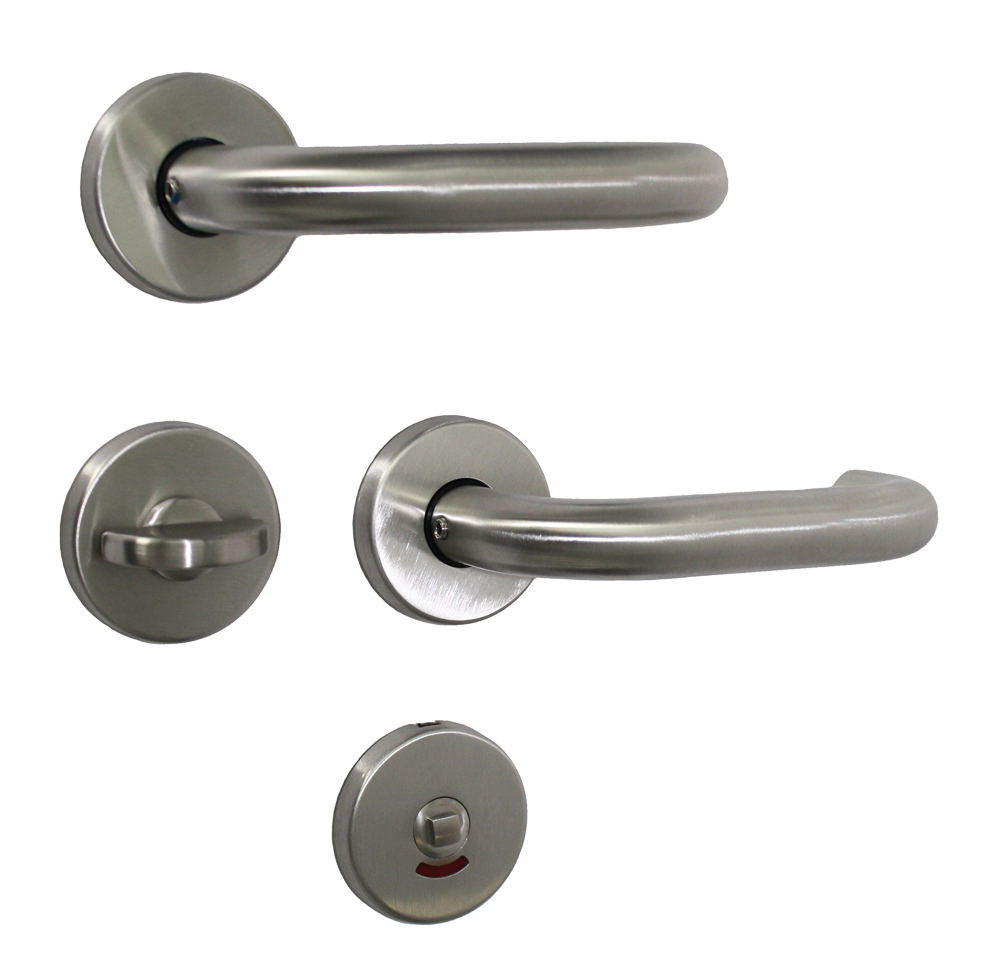 Edelstahl Drückergarnitur Rundrosetten Typ WC - Klasse 4