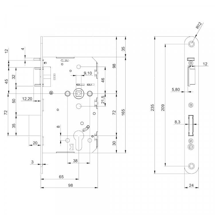 ISEO Selbstverriegelndes FH-Panikschloss SVP DINFIR3. Einsetzbar in einflügeligen Türen und zweiflügeligen Türen bei denen der Standflügel über den Kantriegel gesichert ist. Hergestellt gemäß DIN 18251, EN 12209, EN 1125 und EN179. Einsetzbar in Feuerschutztüren (FH) und Paniktüren. Verriegelt mechanisch selbst beim schließen der Tür. Das Schloss ist mit der Panikfunktion E ausgestattet (durchgehende Nuss) und erfordert daher einen Wechselbeschlag oder feststehenden Knauf / Griffstange auf der Außenseite.